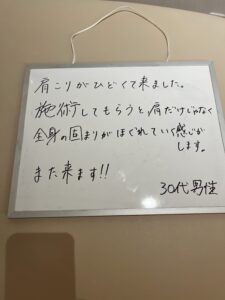愛媛県松山市通い安い整体・ENJOINT整体にご来店いただいたお客様より、